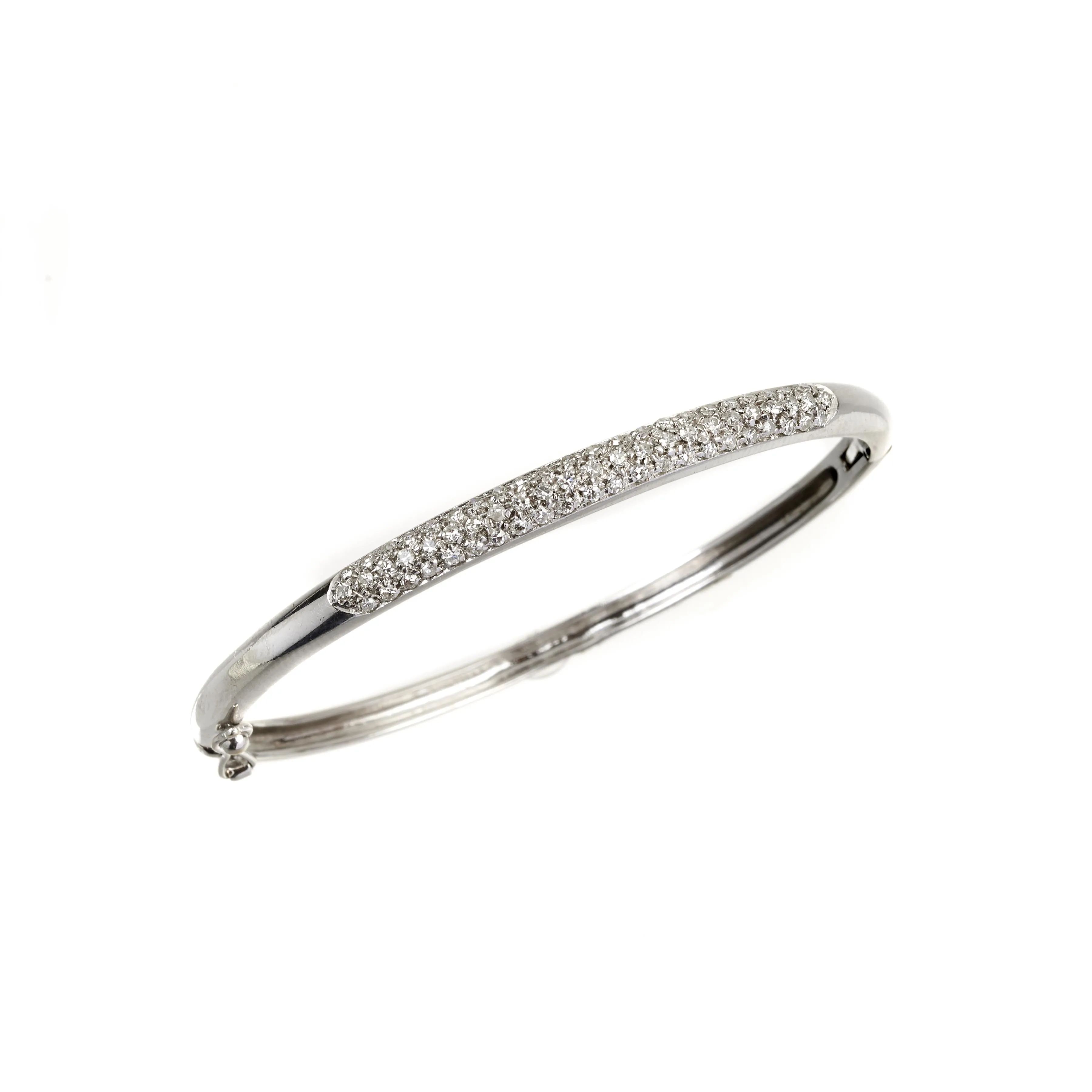 in oro bianco 18kt, impreziosito da pavé di diamanti taglio huit huit per ct. 0,60 circa, punzone 750, diam. cm. 6, gr. 15