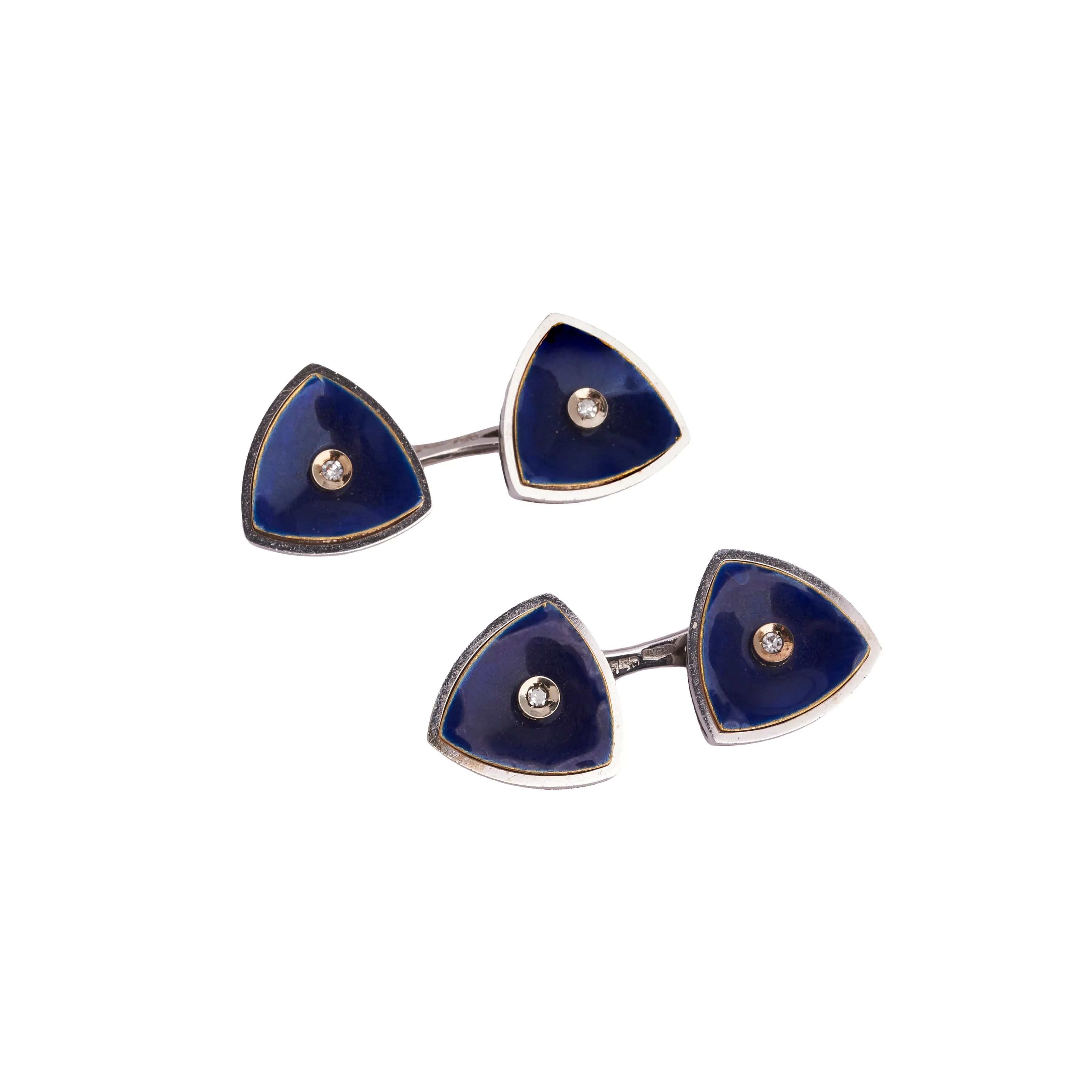GEOMETRIC ENAMELLED CUFFLINKS IN 18KT TWO TONE GOLD