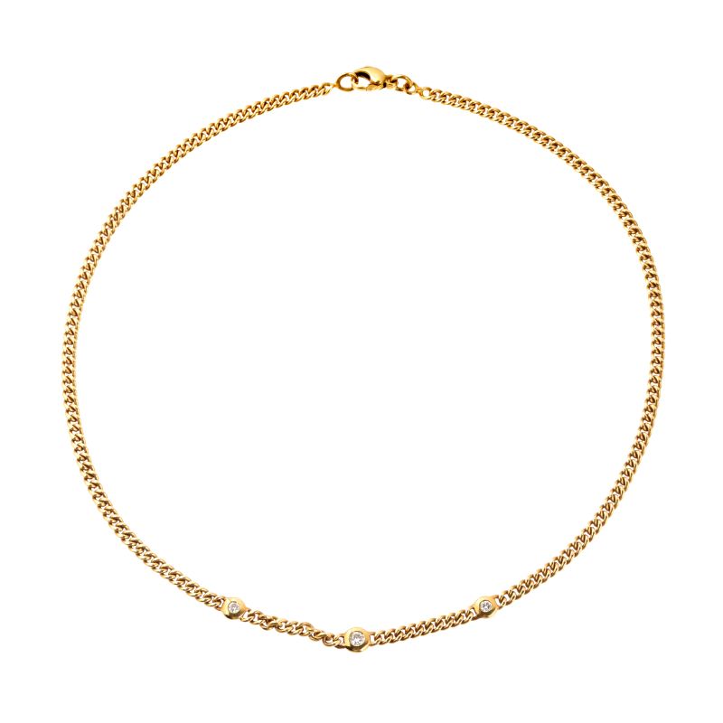 in oro giallo 18kt, con tre diamanti taglio brillante per ct 0.25 circa, punzoni 750 e del fabbricante, lungh. cm 41, gr. 23
