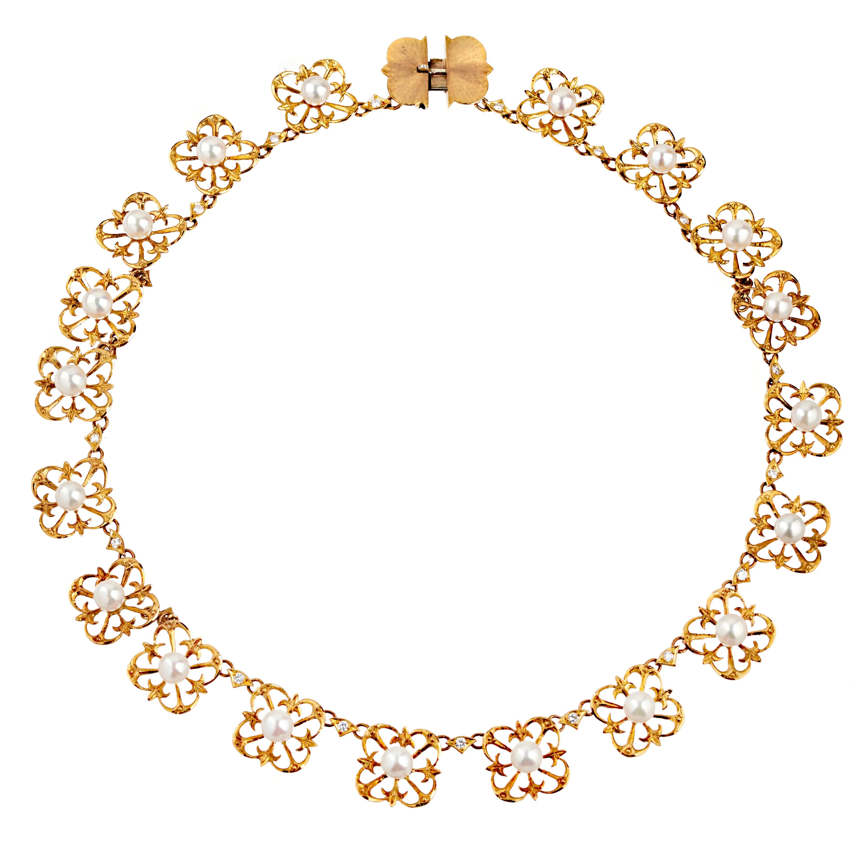 PEARL AND DIAMOND FLORAL NECKLACE IN 18KT YELLOW GOLD