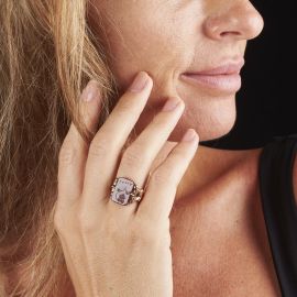 in oro a basso titolo, con una pietra girevole raffigurante su un lato un cane e sull'altro un fiore con un'incisione, mis. 15/55, gr. 2