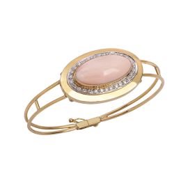 BRACCIALE RIGIDO CON CORALLO ROSA E DIAMANTI