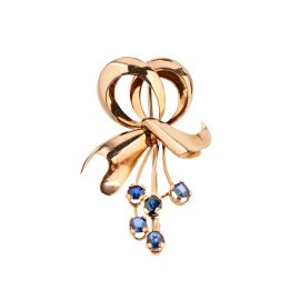 SAPPHIRE RIBBON-SHAPED BROOCH IN 18KT YELLOW GOLD