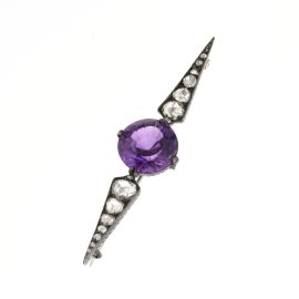 SYNTHETIC STONE AND DIAMOND BROOCH IN SILVER