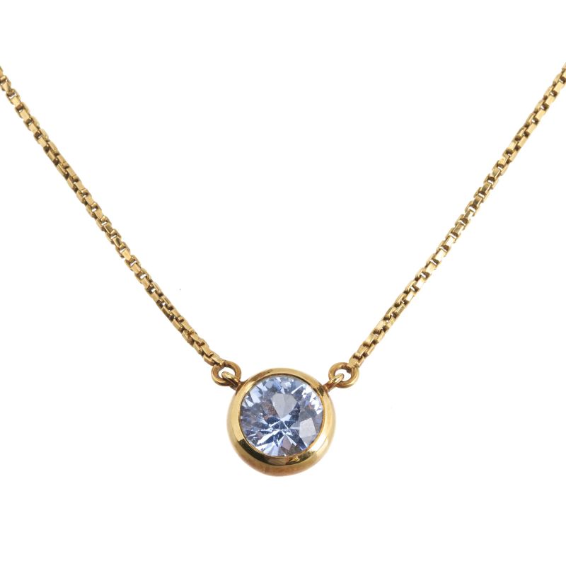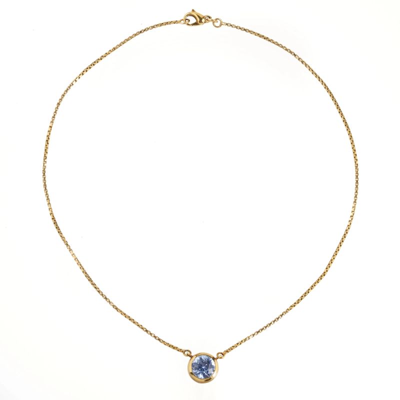 in oro giallo 18kt, elemento pendente recante una pietra sintetica taglio rotondo, lungh. cm 42, gr. 13