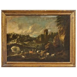 PAESAGGIO FLUVIALE CON ARMENTI E ROVINE