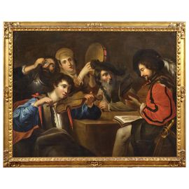 SCENA D'INTERNO CON SUONATORI E BEVITORI