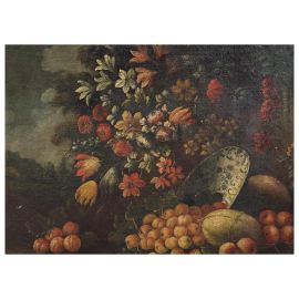 STILL LIVES WITH FLOWERS AND FRUITS IN A LANDSCAPE