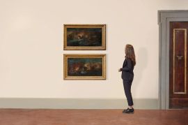 coppia di dipinti, olio su tela, cm 48,5x89