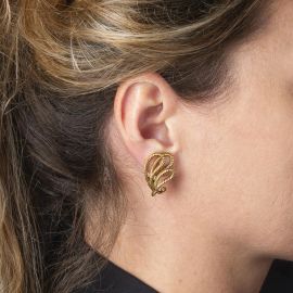 in oro giallo 18 kt, chiusura a clip,cm 2x2.5, gr. 6