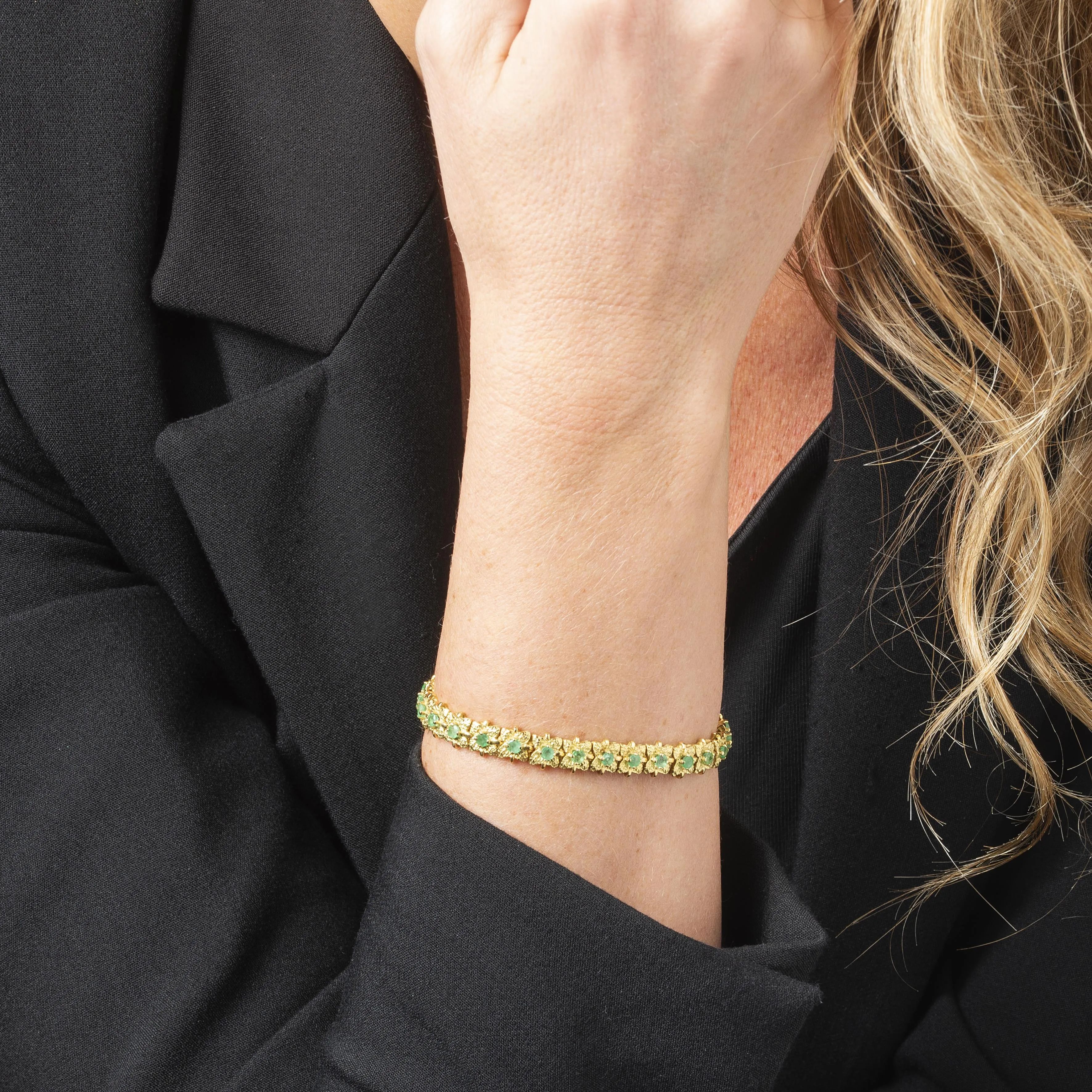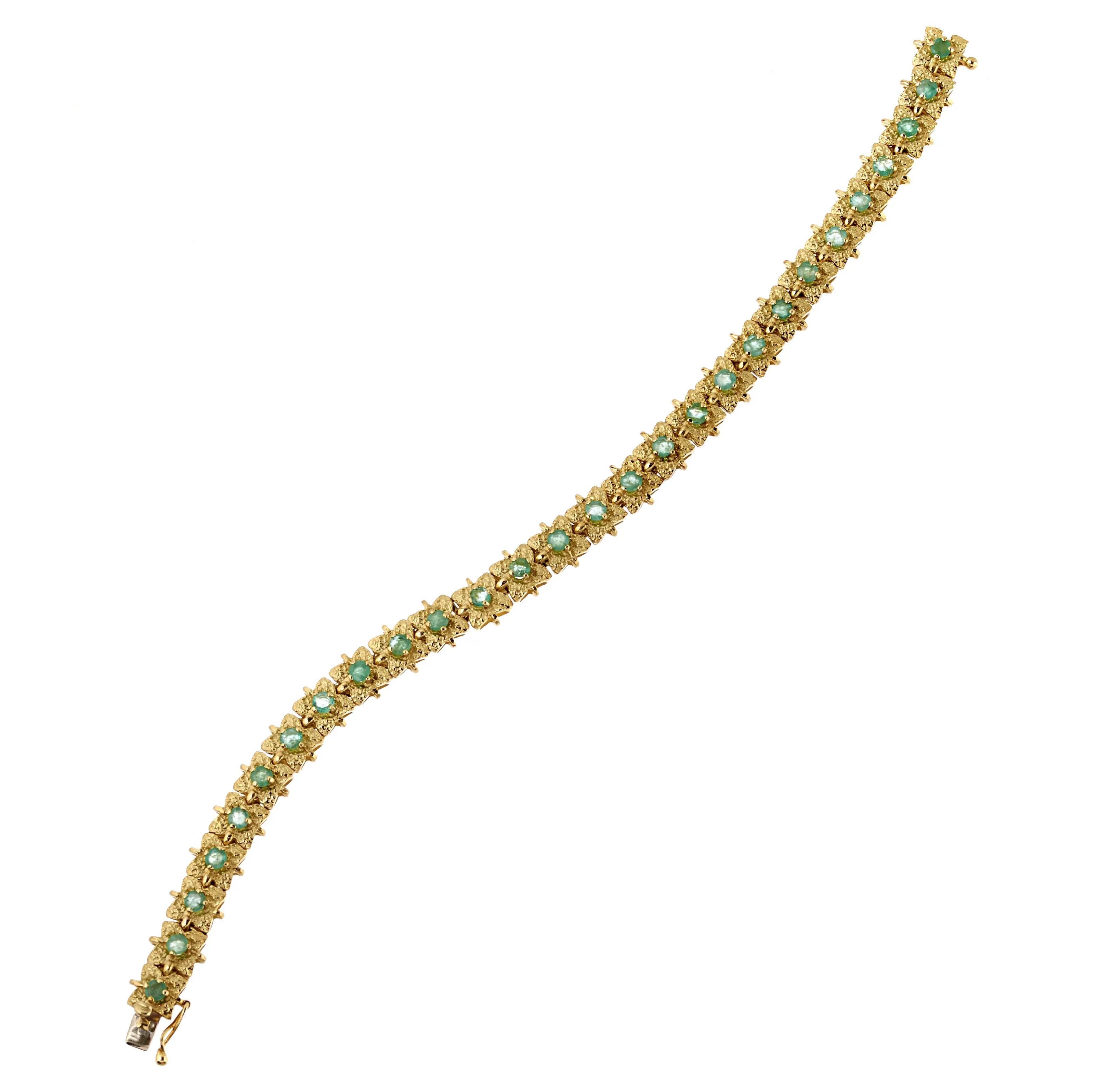 in oro giallo 18kt, composto da una serie di maglie geometriche con al centro smeraldi per ct. 1.40 circa, lungh. cm 17.5, gr. 16