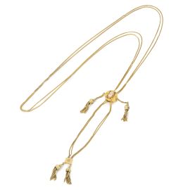 in oro 12kt, composta da doppia catena, ciondoli a nappe e cammeo centrale in conchiglia rappresentante volto di donna, punzoni 12kt, cm. 60, gr. 36.5
