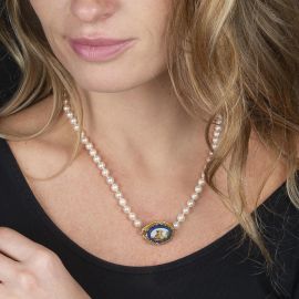 MICROMOSAIC AND PEARLS NECKLACE IN 18KT GOLD