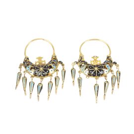 in oro giallo 18kt e smalto, con pendenti (uno mancante), dim. cm 3.2x5.1, gr. 14 complessivi