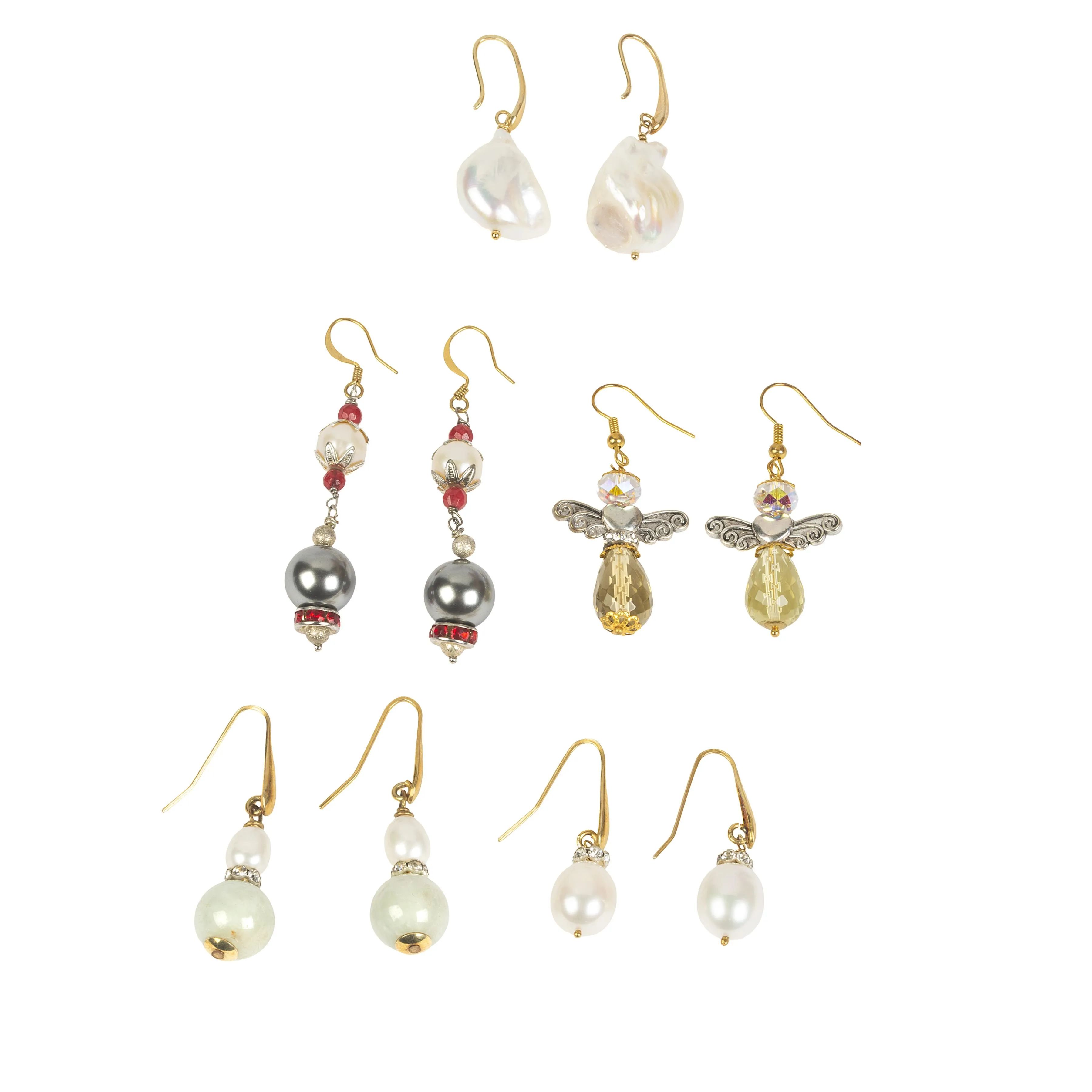 in argento 925 e metallo, forme fantasia, impresiositi da perle e pietre sintetiche multicolore, punzone 925, cm. 4-6, gr. 46