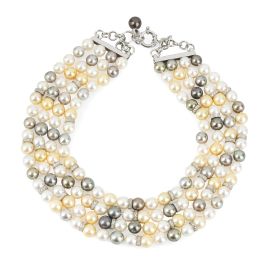 realizzata con quattro fili di perle multicolor di mm 9-10 circa, con diamanti taglio brillante per ct. 2.50 circa complessivi, fermatura in oro bianco 18kt, puzone 750, lungh. cm 39, gr. 211