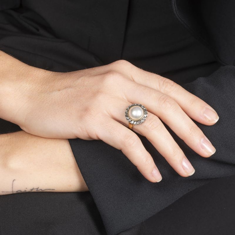 RING WITH PEARL AND DIAMONDS