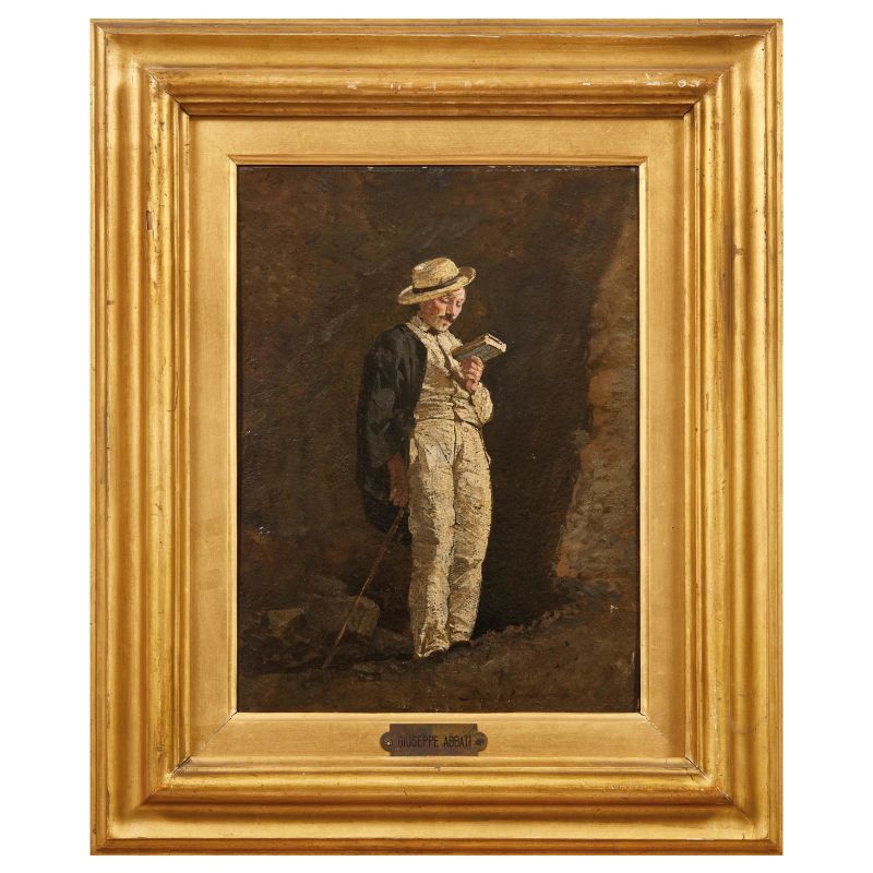 on the reverse: label "323 / Abbati Giuseppe"; label "Collezione d'arte Mario Galli / 21 / Abbati Giuseppe / Ritratto di Diego Martelli"; label "[...]ale Internazionale d'Artre di Venezia - 1948 / 1252"; label "Mostra di pittura italiana moderna al Cairo / gennaio-febbraio 1949 / Giuseppe Abbati / Uomo che legge"; label "Soprintendenza alla Galleria Nazionale d'arte Moderna / I Macchiaioli / maggio-luglio 1956 / Ritratto di Diego Martelli"