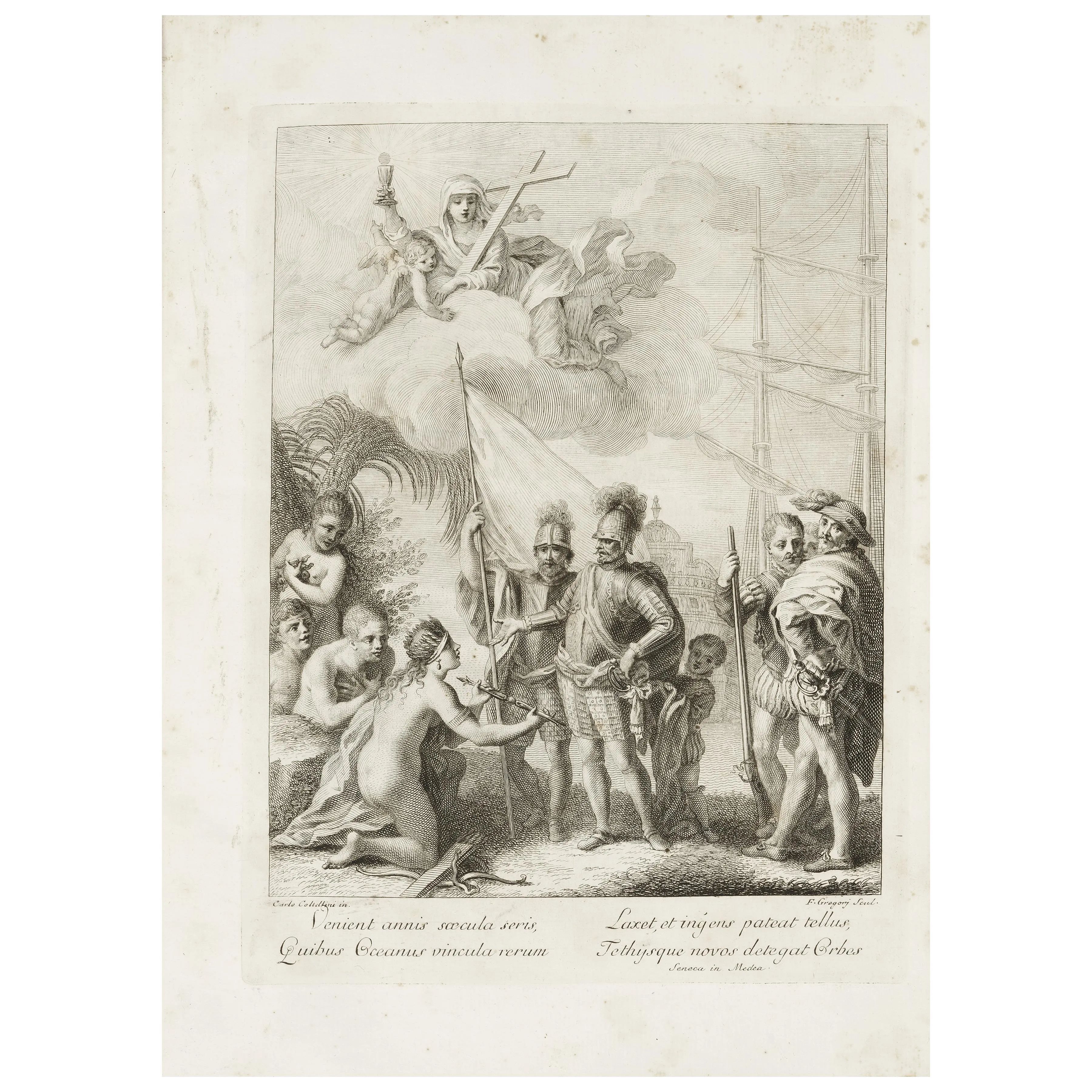 3 tomi in un volume in quarto (310 x 230 mm); xxiij, [1], 216, [2]; 256; 253, [3] pagine. Antiporta raffigurante l'incontro di Colombo con gli indigeni, vignette incise ai frontespizi, 39 carte geografiche delle quali 17 ripiegate, 37 tavole con vedute, animali, uccelli, piante, costumi, il tutto inciso in rame (secondo volume manca l'indice delle illustrazioni e la carta di Santo Domingo). Legatura coeva in mezza pergamena con angoli e carta colorata, titolo impresso in oro al dorso liscio, tagli a spruzzo. Ex libris del Conte Giuseppe Martelli di Firenze.