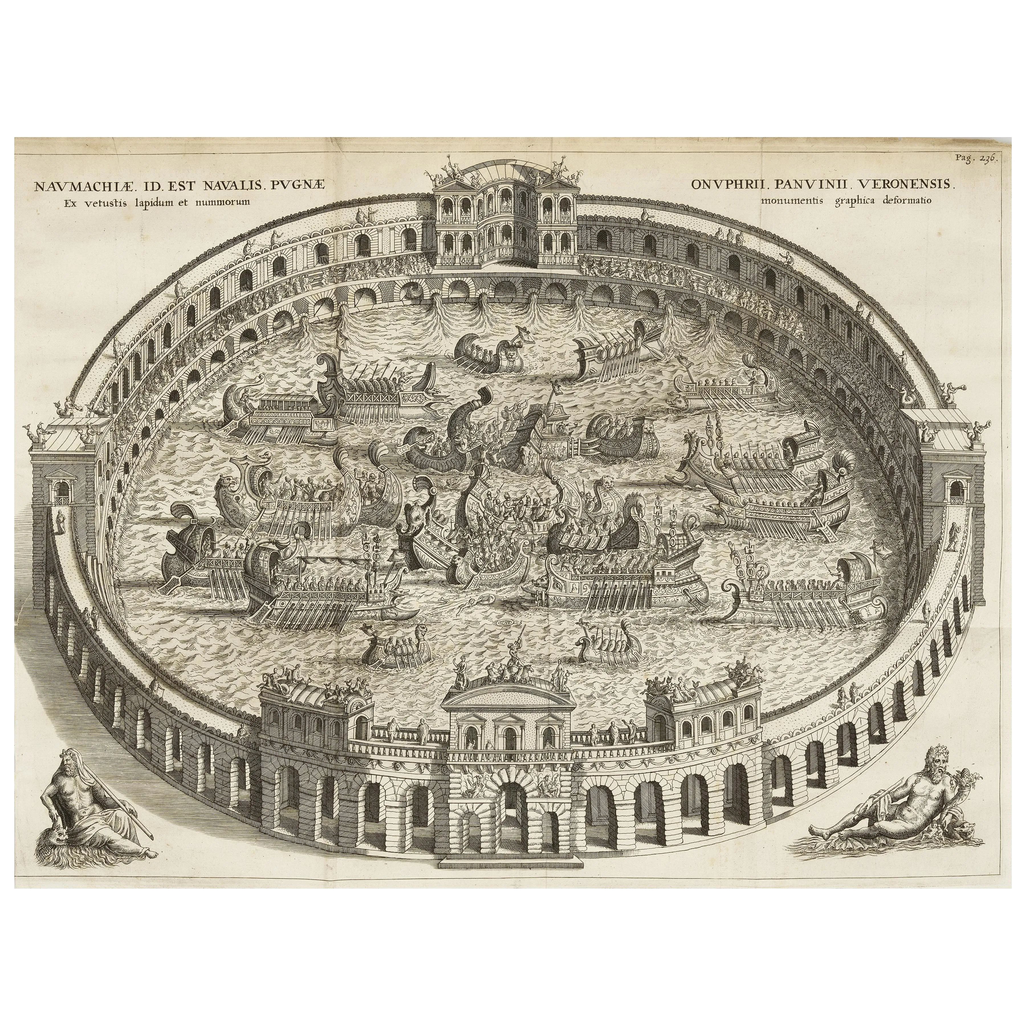 Esemplare molto marginoso di quest’opera, una delle prime a trattare del valore terapeutico della ginnastica e dello sport in generale per la cura delle malattie e delle disabilità. La prima parte è la storia delle palestre e delle pratiche ginniche greche e romane; la seconda parte affronta gli aspetti igienici e medici dell’esercizio fisico. Questa edizione fu la prima a contenere l’antiporta di Romeyn de Hooghe che raffigura Esculapio, Bacco addormentato con il suo asino, una figura femminile con in mano una stella a cinque punte e, sullo sfondo, uno stadio dove gli atleti sono impegnati in varie discipline sportive. Le tavole ripiegate illustrano stadi, combattimenti di gladiatori e una naumachia. Le suggestive xilografie, già utilizzate per la prima volta nella seconda edizione del 1573, sono opera del celebre Coriolano, artista italiano di origine tedesca, e rappresentano alcune tra le migliori incisioni italiane del periodo manierista. Cicognara 1713: “Quest'edizione è la più stimata”.