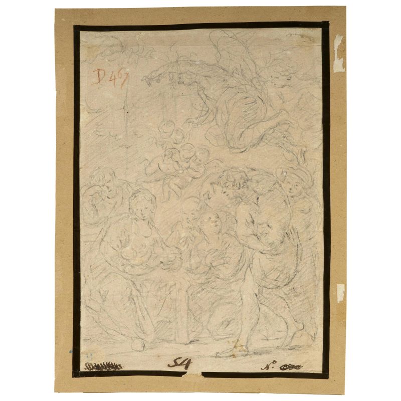 on the verso, black chalk: drawind Adoration of the shepherds (?)