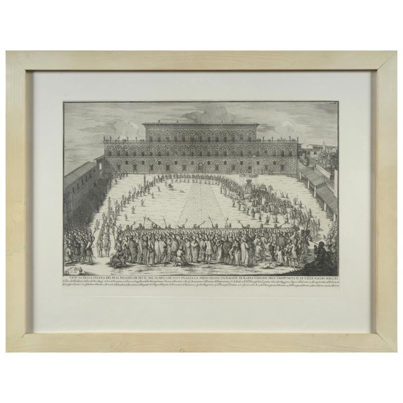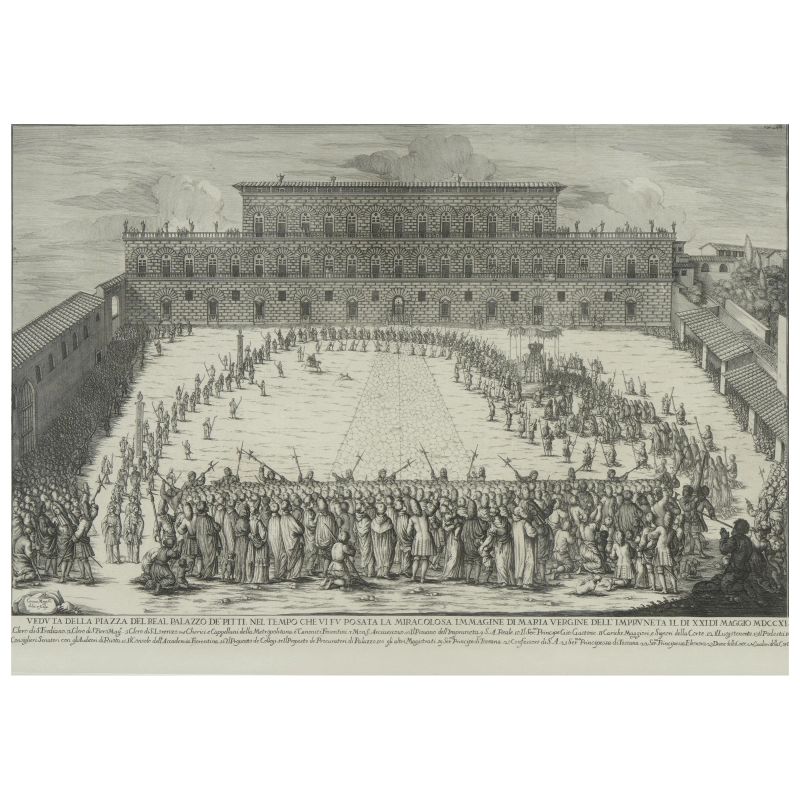 VEDUTA DELLA PIAZZA DEL REAL PALAZZO DE PITTI. NEL TEMPO CHE VI FU POSATA LA MIRACOLOSA IMMAGINE DI MARIA VERGINE DELL'IMPRUNETA IL DI XXLDI MAGGIO MDCCXI