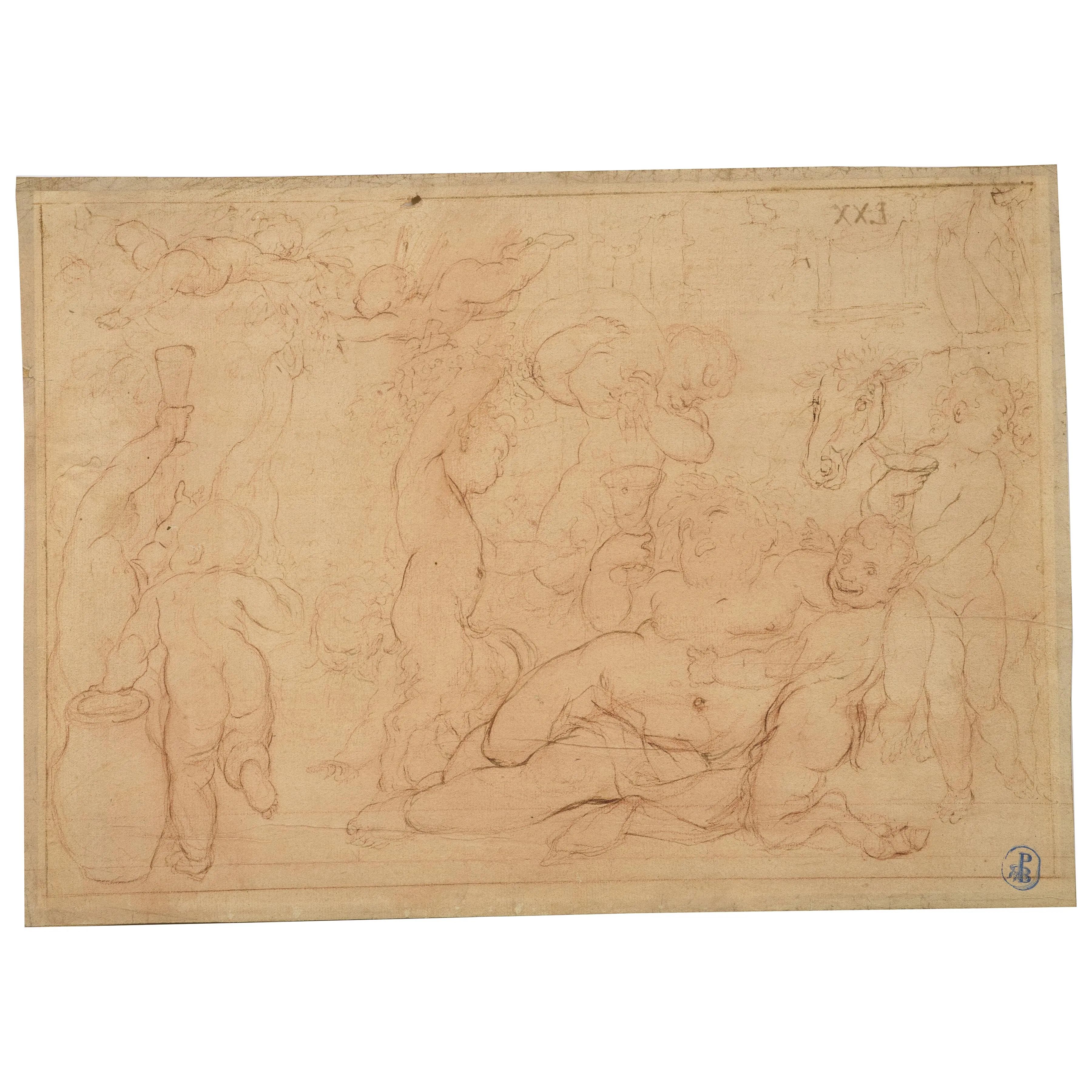 on the recto, upper left, pen and brown ink: "LXX"; lower left, black chalk: "Andrea Sacchi"