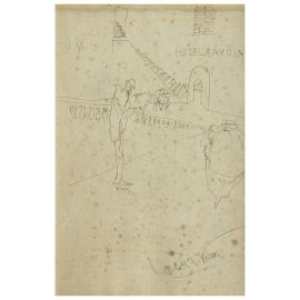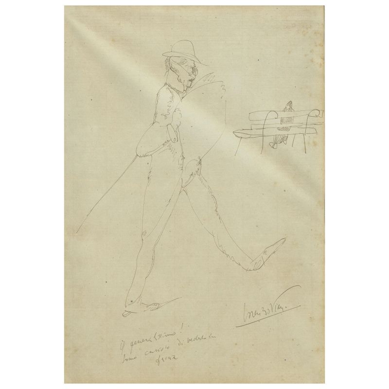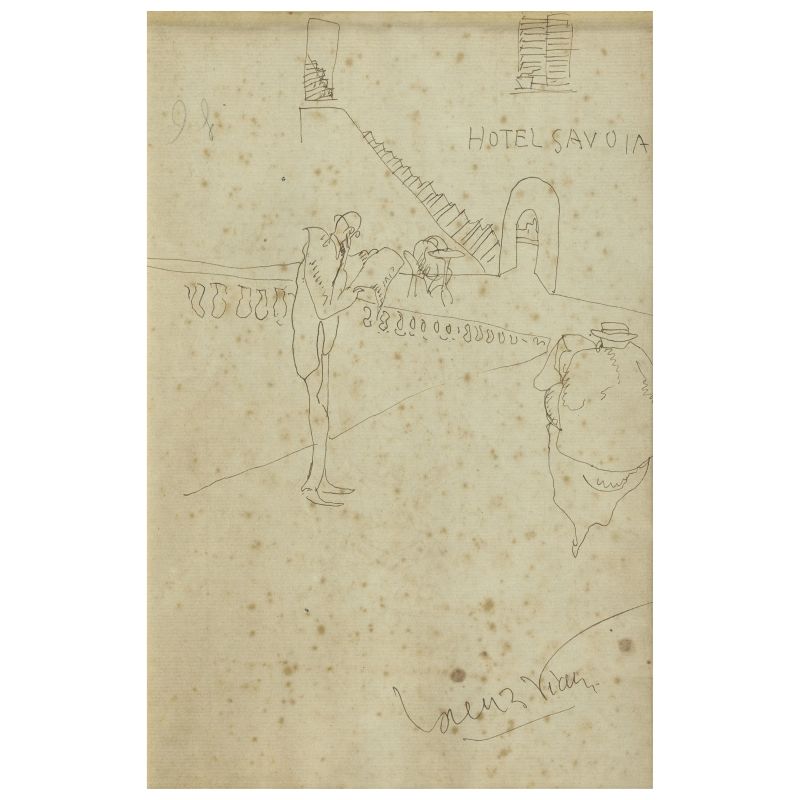 on the recto, lower center, pen and brown ink: "Al generalissimo! / Sono curioso di vederlo in / faccia / Lorenzo Viani"