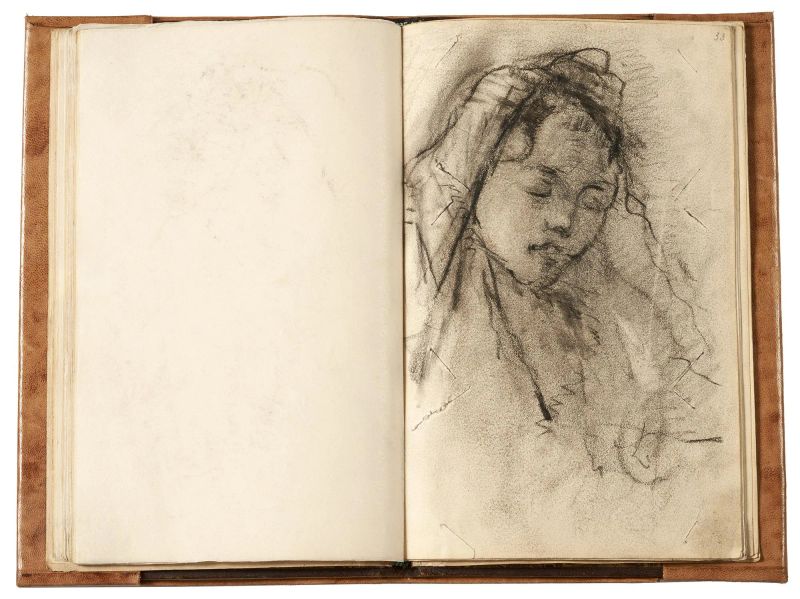 Sketchbook containing approximately 23 sheets with drawings in black chalk and charcoal, depicting subjects of various kinds