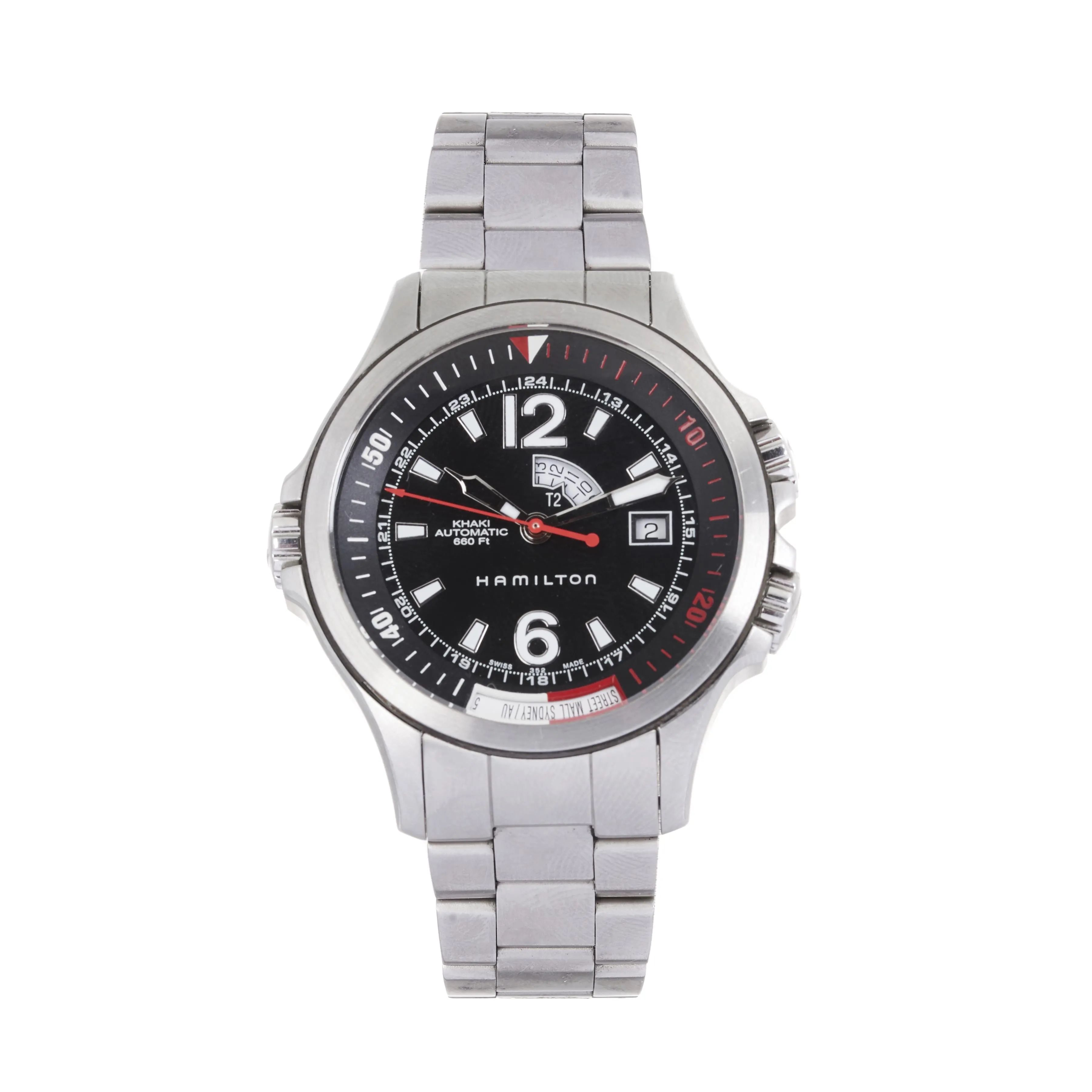 HAMILTON KHAKI NAVY GMT REF. H775550 STAINLESS STEEL WRISTWATCH