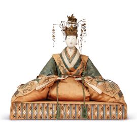 日本 十九-二十世纪 木雕贵族人像 高约30厘米