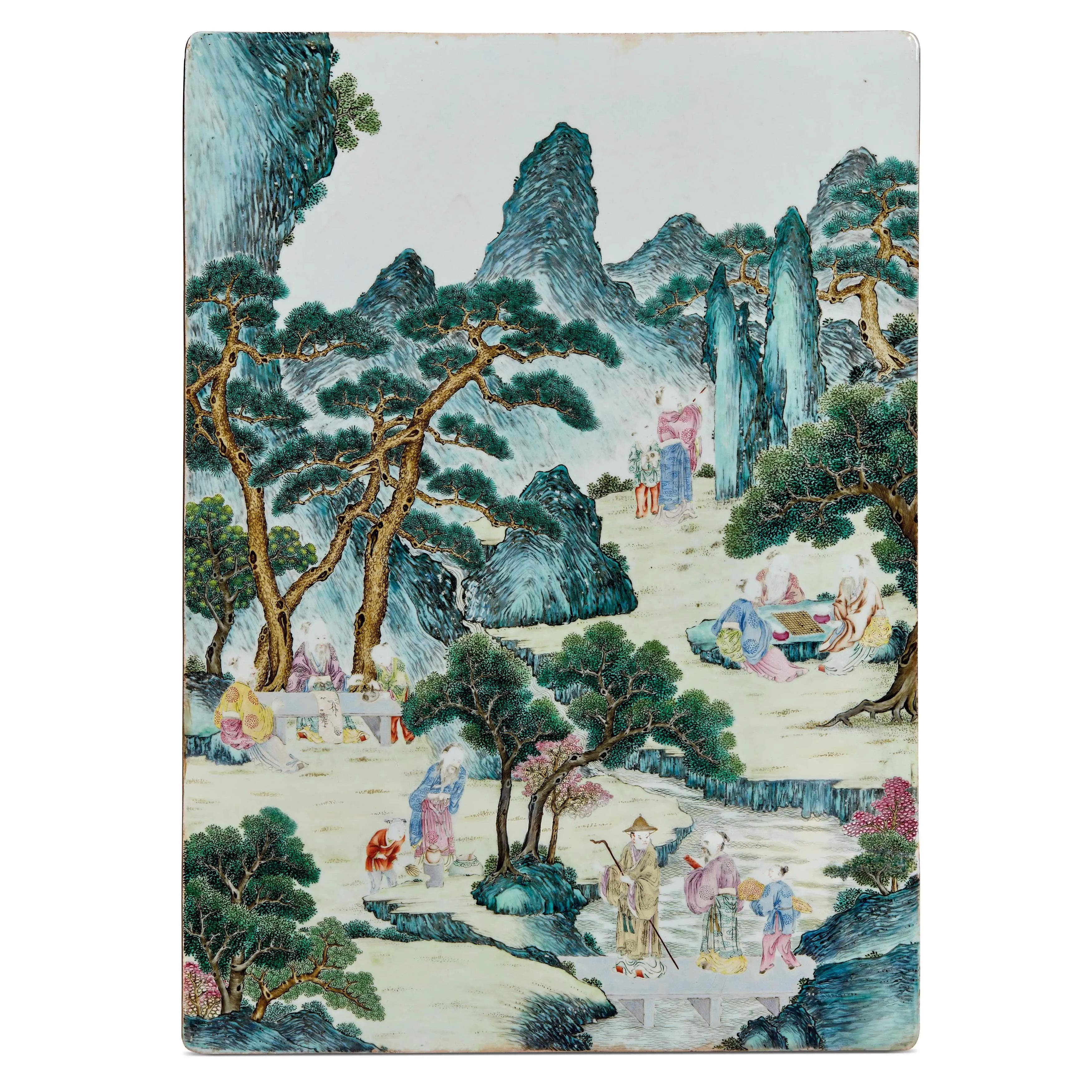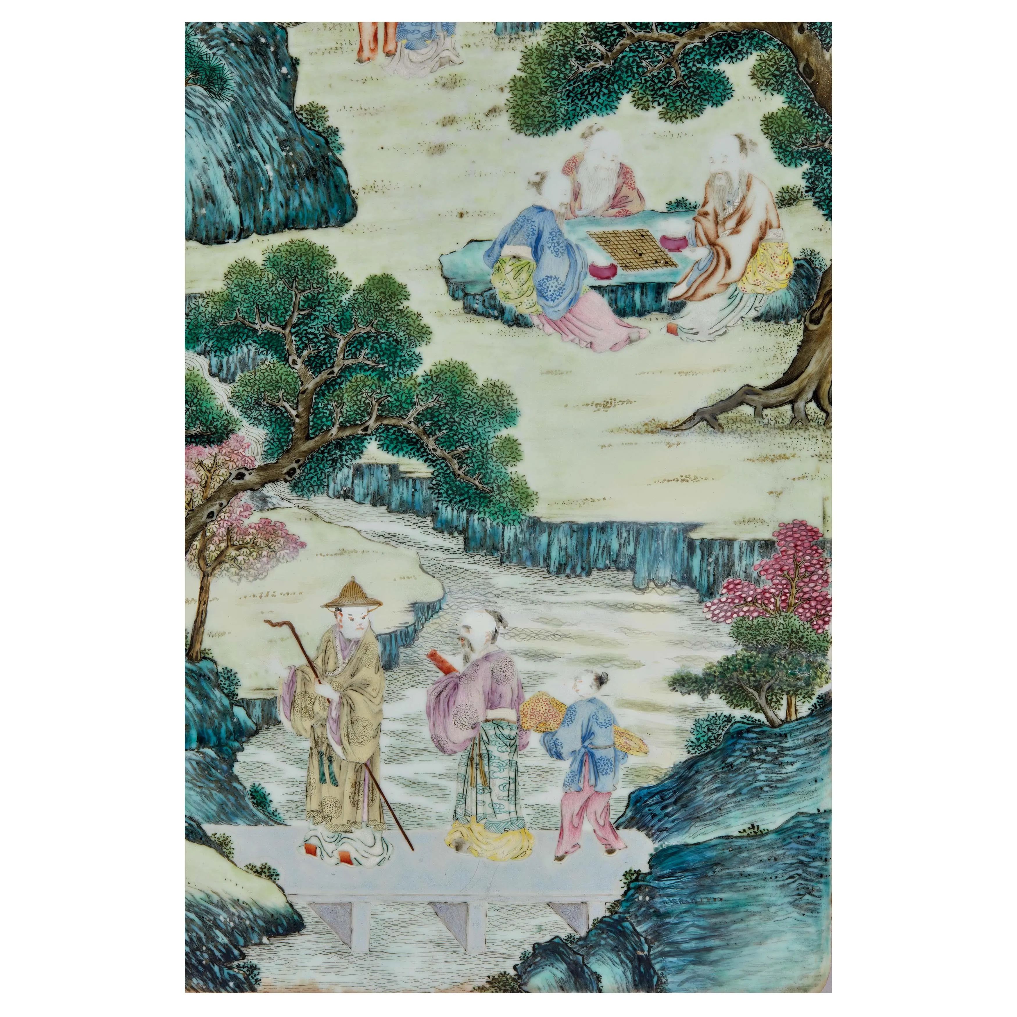 十九世纪 粉彩山水人物瓷板画 42x58厘米
