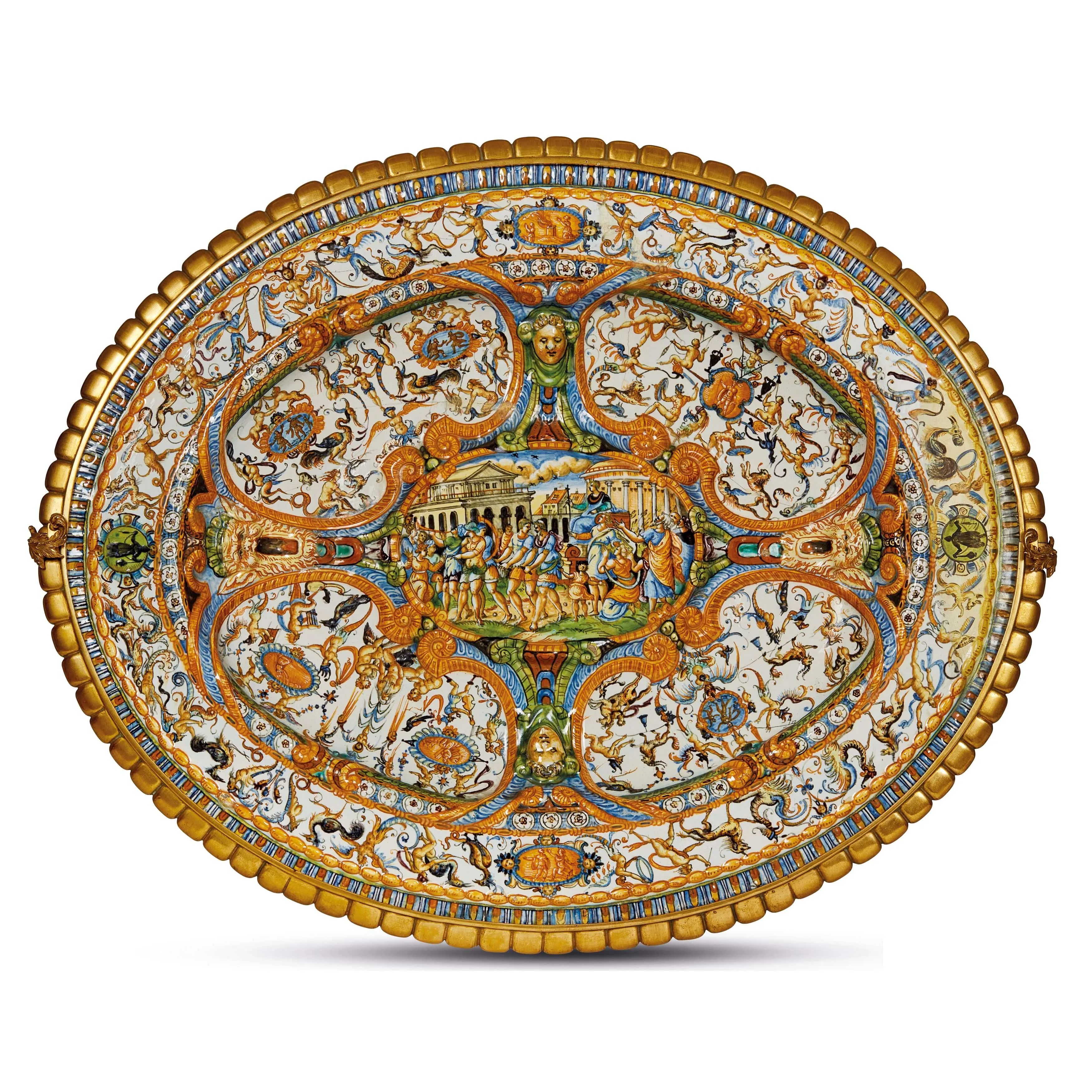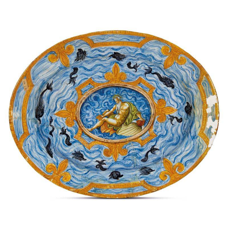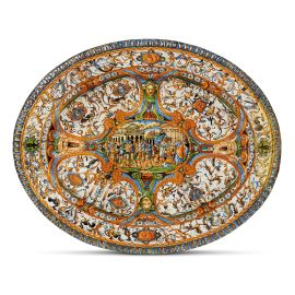 A PROBABLY ANTONIO CONRADO OVAL CHARGER TRAY, FRANCE, NEVERS, CIRCA 1620-1645