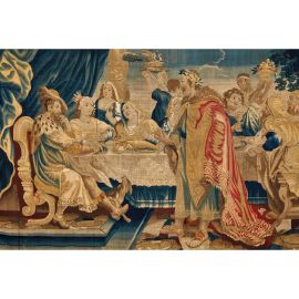 Della stessa serie, conosciamo altri arazzi che rappresentano scene tratte dalle Storie di Sansone, un tempo conservati nelle Raccolte di Palazzo Durini a Milano e oggi nelle Raccolte dei Musei del Castello Sforzesco a sempre Milano. Un altro nucleo, invece, si trova a La Cervara Abbazia di San Girolamo al Monte di Portofino, in Liguria. Tutti gli esemplari, tra cui il nostro, sono accomunati dalla medesima bordura di tipo architettonico: ai lati compaiono due colonne tortili, arricchite con motivi floreali mentre nelle cornici orizzontali sono disposti festoni di fiori attorno ad uno centrale con cammeo