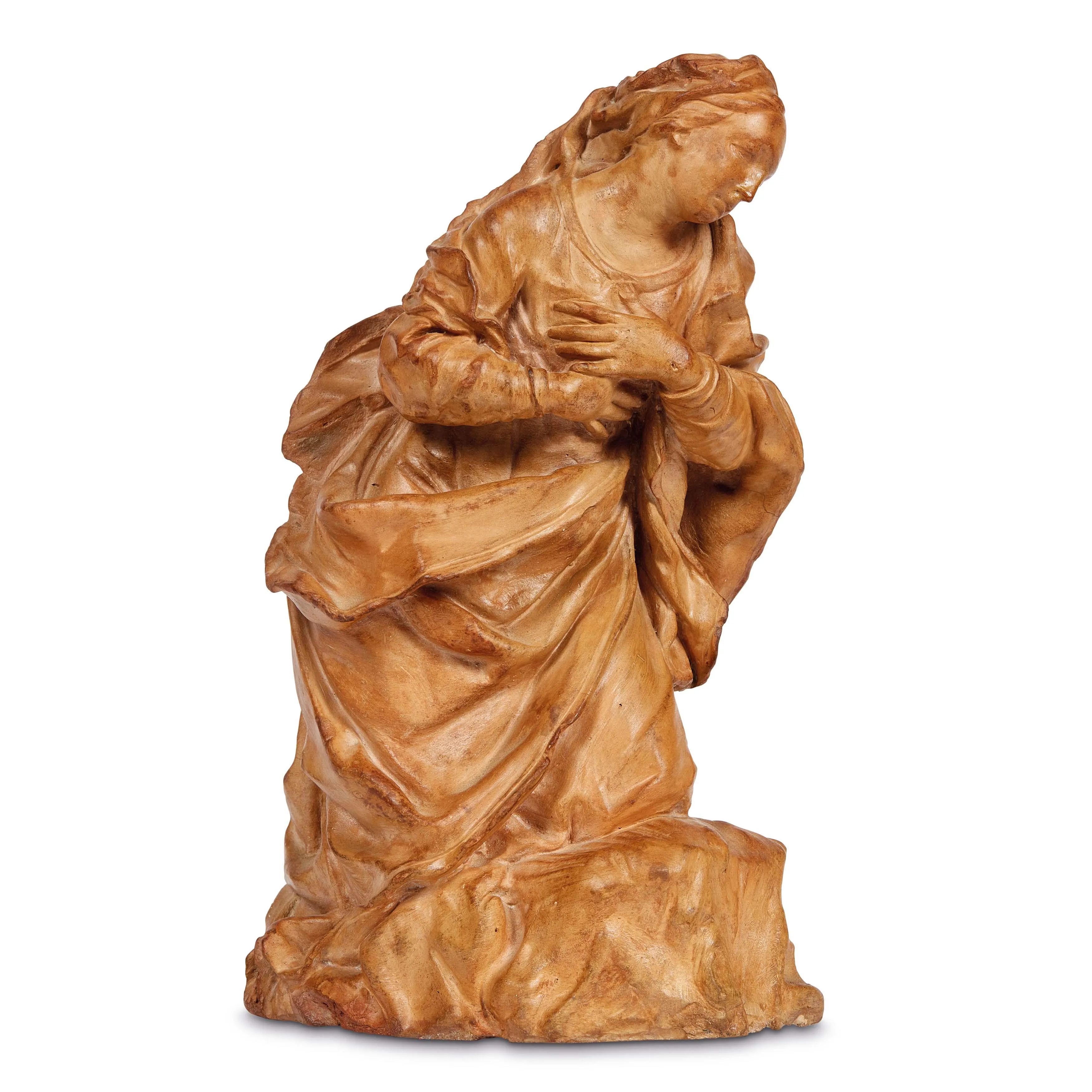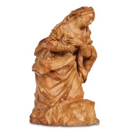 in terracotta raffigurante Vergine dolente, rappresentata inginocchiata con le mani strette al petto, alt. cm 30