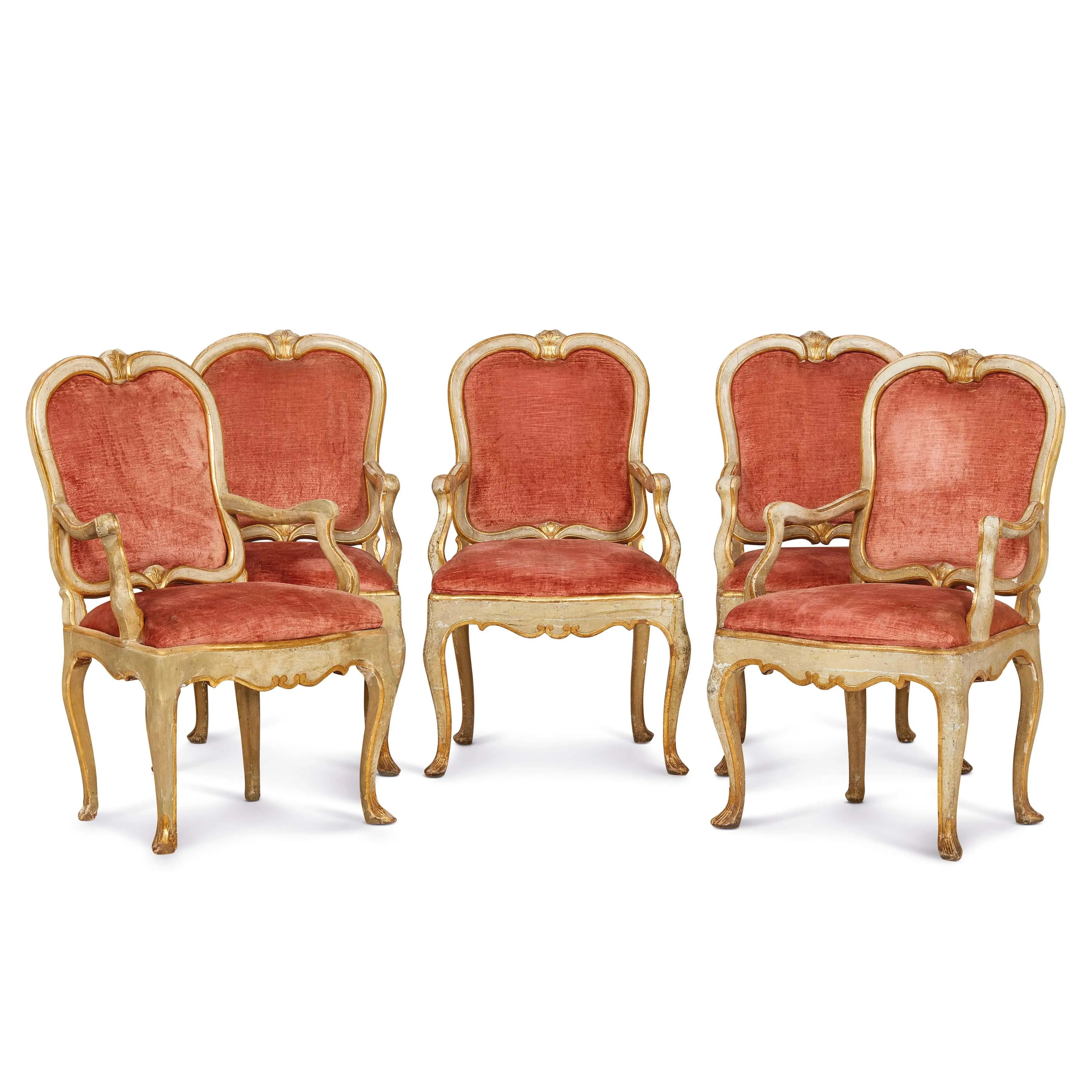 FIVE ROMAN ARMCHAIRS, 18TH CENTURY