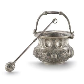 A SILVER HOLY WATER BUCKET AND SPRINKLER, END OF 19TH CENTURY