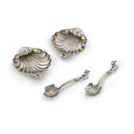 in argento sterling realizzate come valve di conchiglia, complete di cucchiaini non pertinenti, complessivi g 98,5