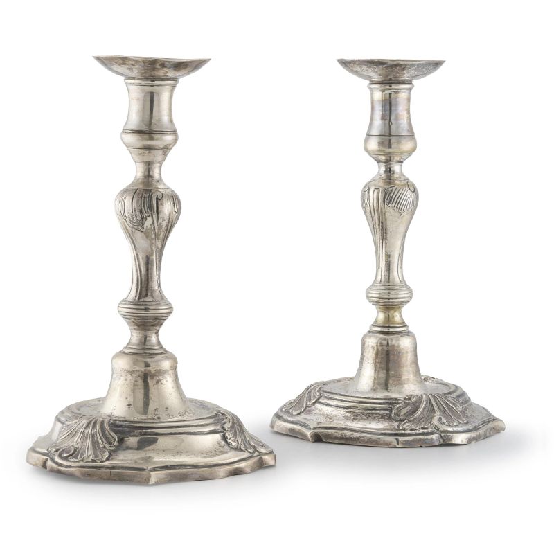 PAIR OF SILVER CANDLESTICKS, 18TH CENTURYCOPPIA DI CANDELIERI, SECOLO XVIII