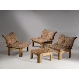 THREE ARMCHAIRS AND A LOW TABLE