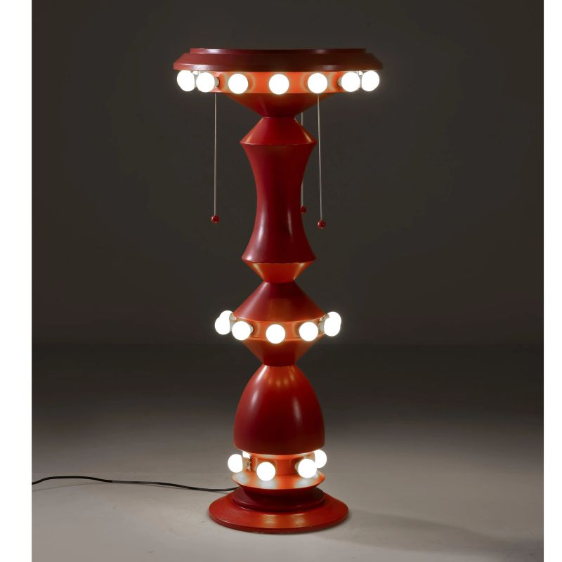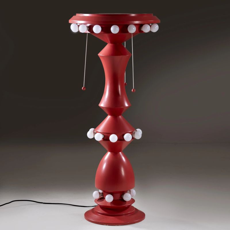 «GIOSTRA» FLOOR LAMP, RED WOODEN STRUCTURE