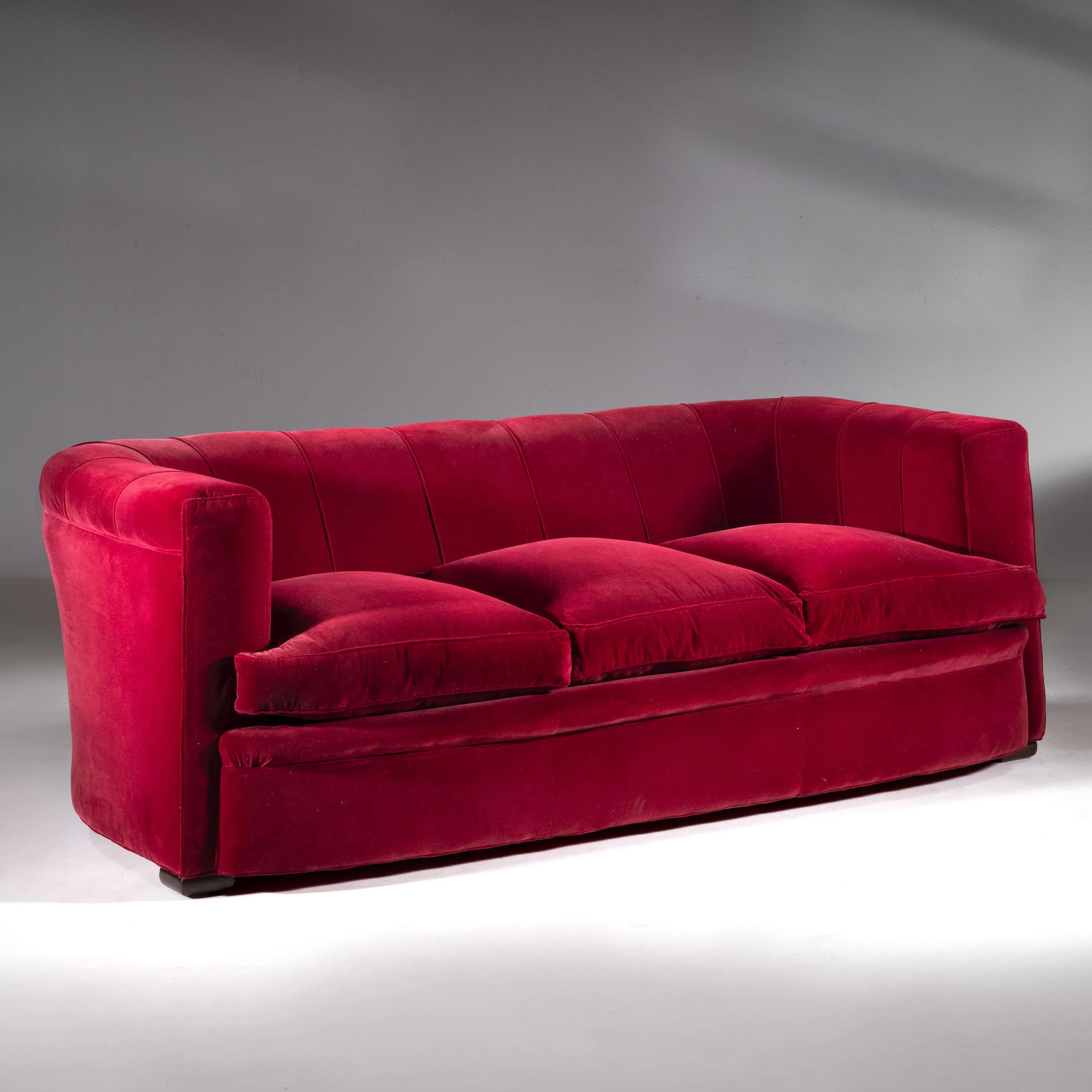 SOFA, WOODEN SCRUCTURE, RED FABRIC UPHOLSTERED