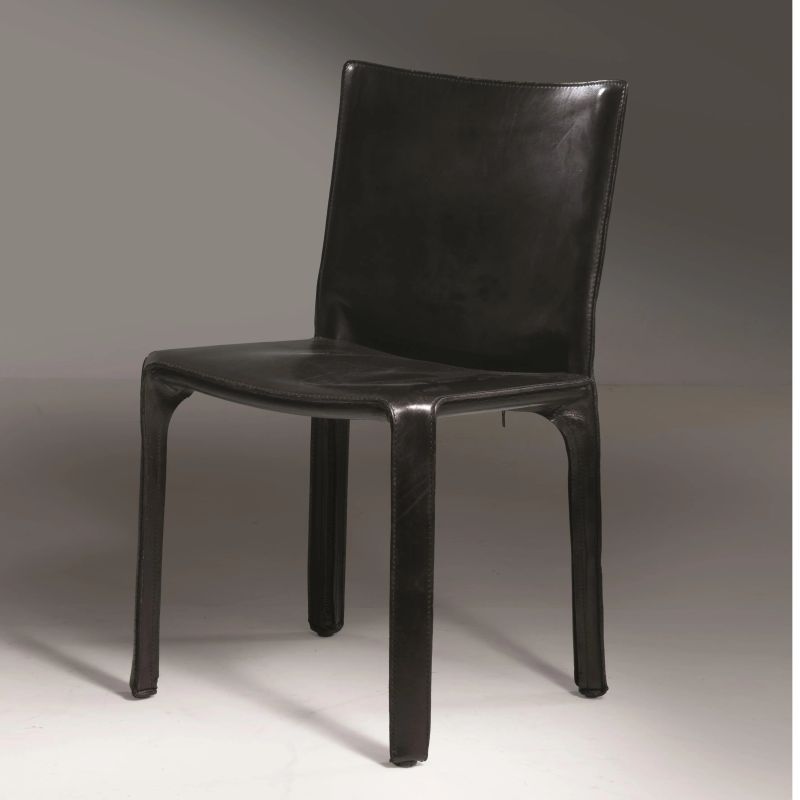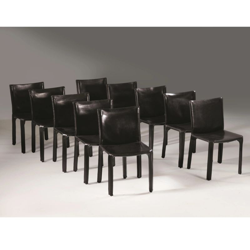 TEN «CAB» CHAIRS, METAL STRUCTURE, BLACK LEATHER UPHOLSTERY