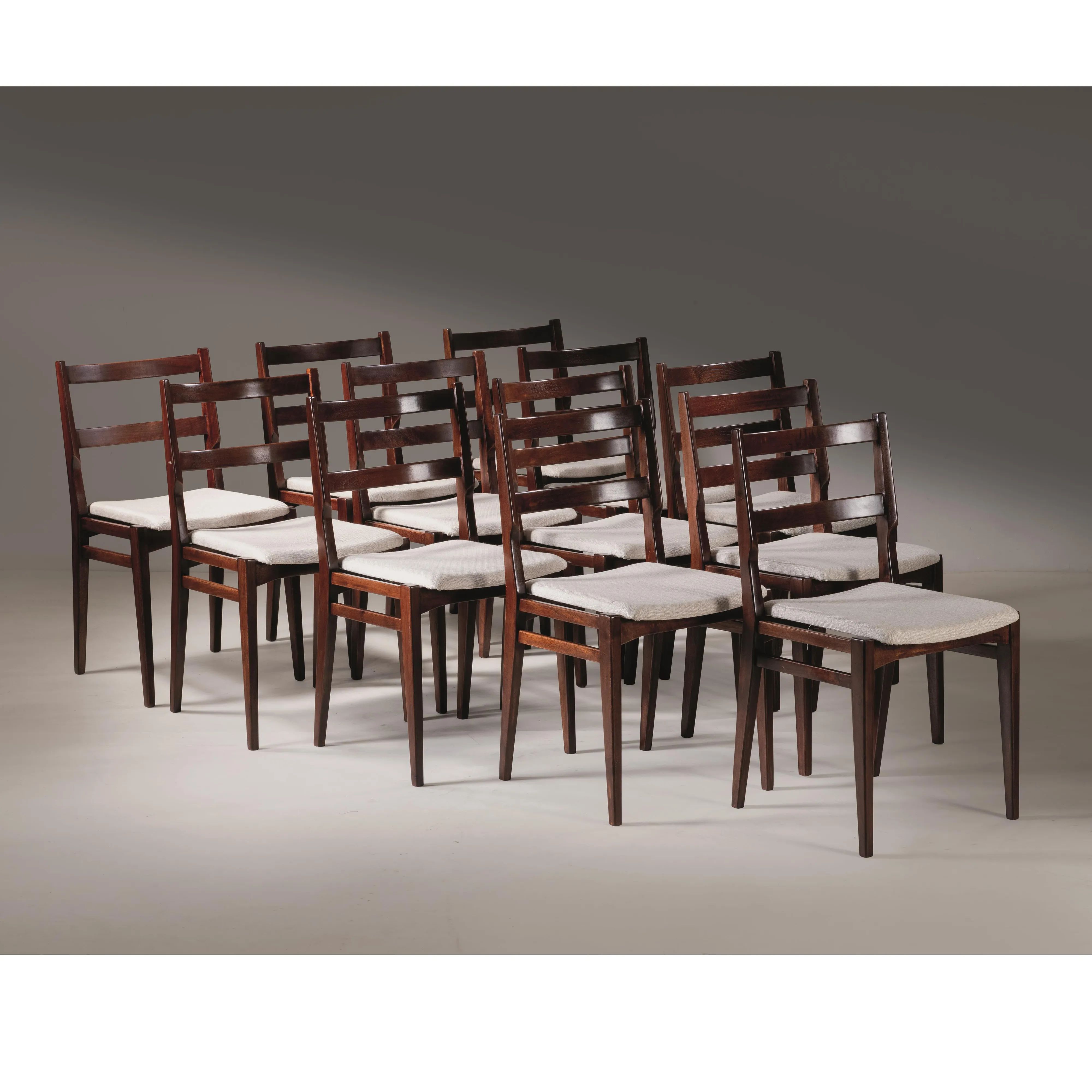 TWELVE CHAIRS, WOODEN STRUCTURE, BEIGE FABRIC SEAT