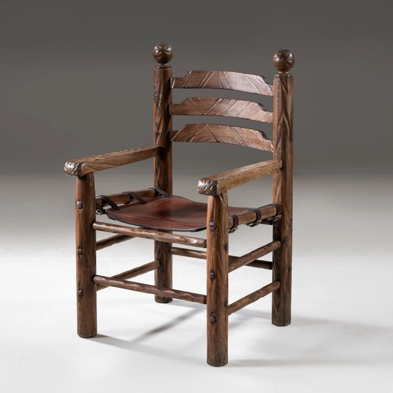 TWO ARMCHAIRS AND TWO CHAIRS, WOODEN STRUCTURE