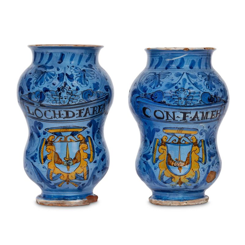 A PAIR OF PHARMACY JARS (ALBARELLI), ROME, 17TH CENTURY