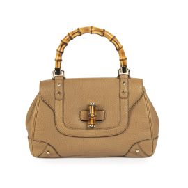 Bella rivisitazione dell'iconica Bamboo, in splendida pelle di un caldo beige, questa borsa a mano ha il manico in bamboo, come la chiusura a nottolino. Fodera iconica e piccoli studs in ottone a ravvivarne lo stile.