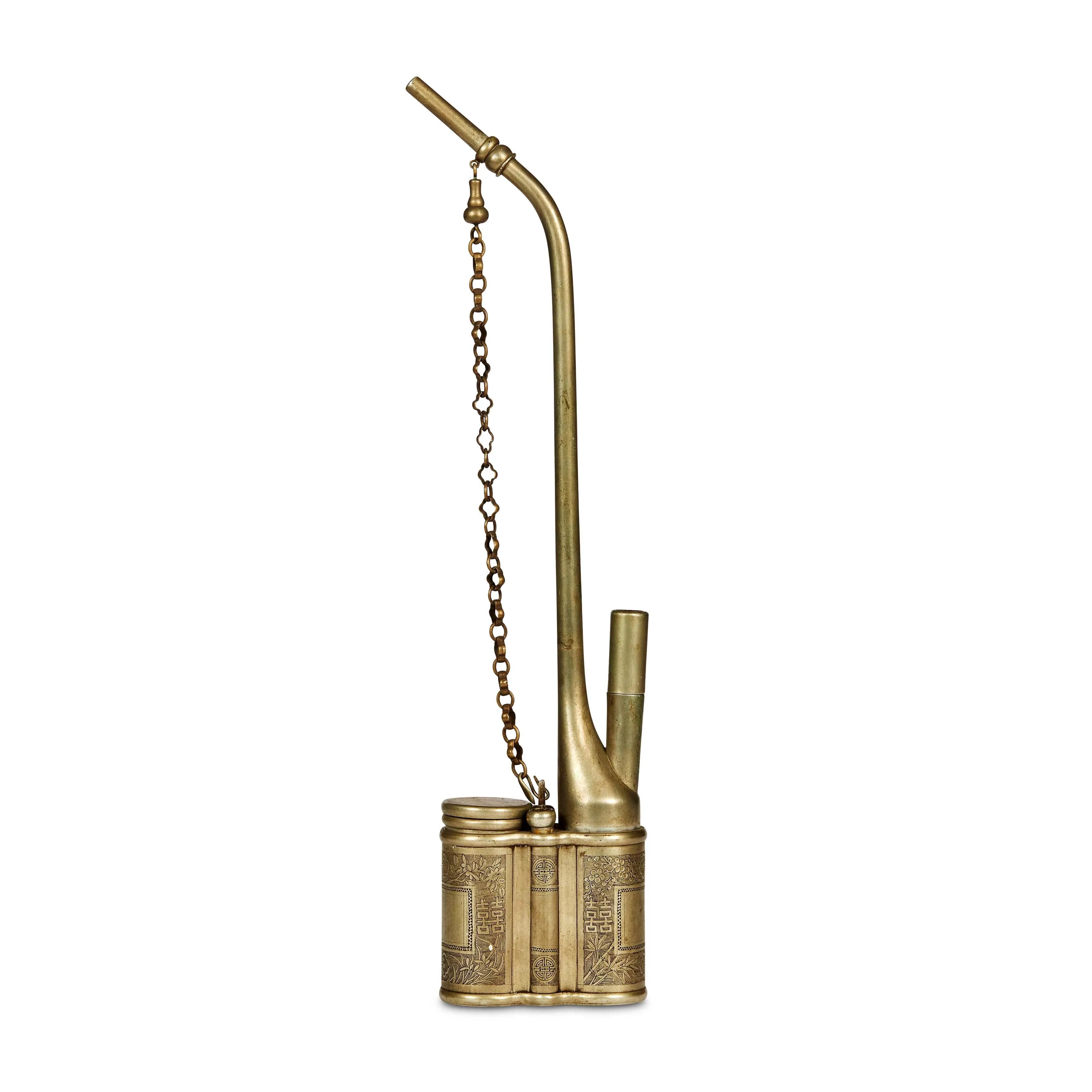 the shaft with two cylindrical chambers at the base and a long curved mouthpiece.