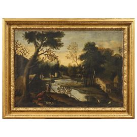 PAESAGGIO FLUVIALE CON VILLAGGIO RURALE