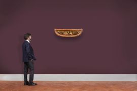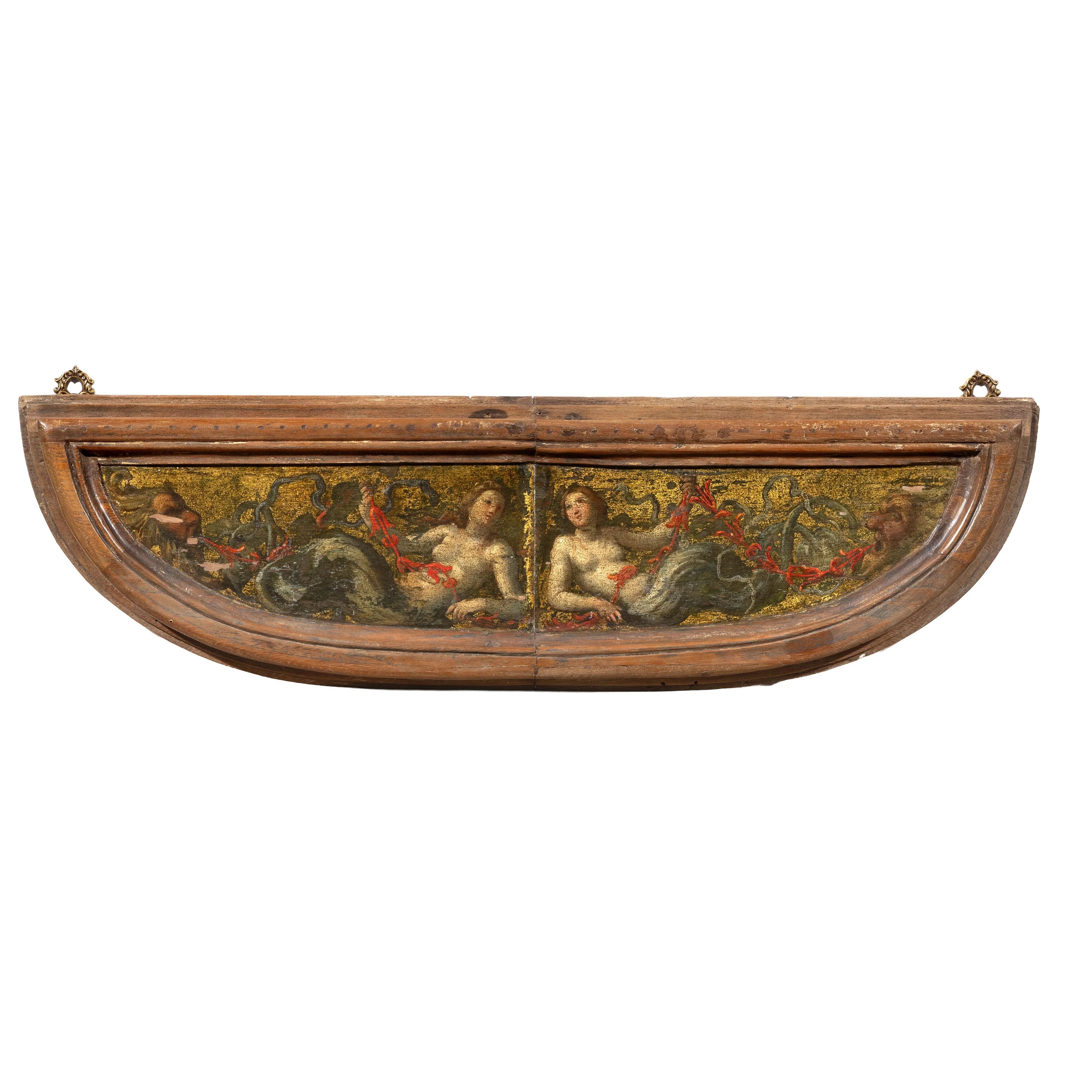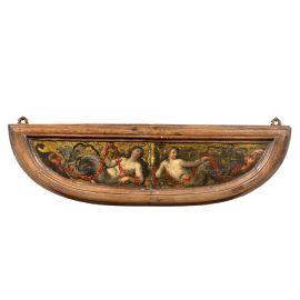 pair of paintings, oil and gold on panel, 16x56.5 cm